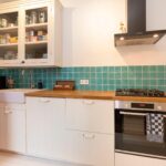De schouw vormt op natuurlijke wijze de scheiding tussen de zit- en eethoek. Aan de achterzijde geven dubbele openslaande deuren toegang tot de tuin. De keuken is separaat en geeft via een openslaande deur toegang tot overkapping en tuin. Je vindt hier een recht keukenmeubel met houten werkblad en fraaie wandtegeltjes. Inbouwapparatuur betreft een vierpits gaskookplaat, afzuigkap, oven en vaatwasser. Blikvanger is de authentieke wandkast met glazen deurtjes.
