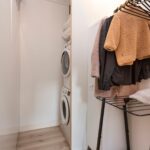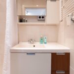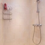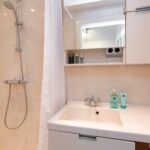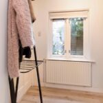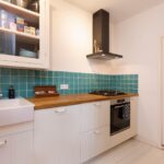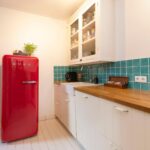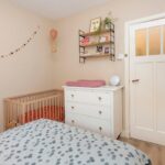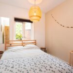 Vanuit de keuken heb je toegang tot de badkamer met designradiator, douche en badkamermeubel met bergruimte, wastafel en spiegelkast met wandcontactdoos. Aan de overzijde van de keuken bevindt zich de wasruimte/bijkeuken met witgoedaansluitingen en bergruimte. Vanaf hier heb je toegang tot de slaapkamer, afgewerkt met een mooie laminaatvloer, hoge plinten, licht geschilderde wanden, radiator en raampartij met openslaande ramen, uitkijkend op de tuin.