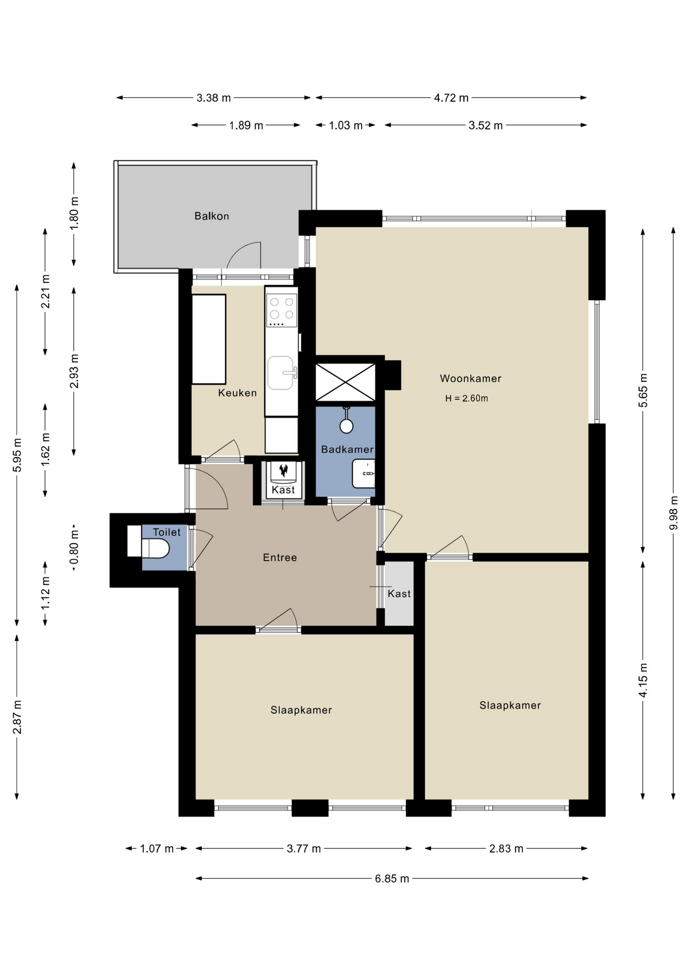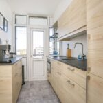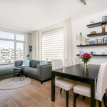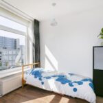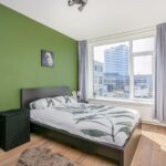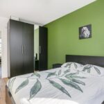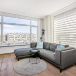 Ruime hal/entree met toilet, was-/C.V.-ruimte en handige voorraadkast. Lichte woonkamer aan de voorzijde met grote raampartijen (extra zijraam) en houten vloerdelen. Vanuit de woonkamer is de hoofdslaapkamer te bereiken. Tweede slaap-/werkkamer. De houten vloerdelen lopen door in deze kamers. Keurige, licht betegelde badkamer met inloopdouche en wastafel. Moderne keuken (2018) v.v. inductiekookplaat, afzuigkap, combi-oven, koel-/vriescombinatie en vaatwasser. Vanuit de keuken heb je toegang tot het balkon met uitzicht op de contouren van de binnenstad.