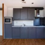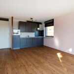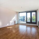 Je betreedt het appartement in de diepe hal, deze is voorzien van een meterkast en bergkast, alwaar de cv-ketel en witgoedaansluitingen zijn gesitueerd. Je krijgt toegang tot alle woonvertrekken. Een nette laminaatvloer is doorgetrokken vanuit de hal naar de woonkamer, slaapkamer en werkkamer. De ruime woonkamer is voorzien van lichte wanden en het plafondhoge raam, zijraam en openslaande deuren, met Frans balkon, zorgen voor een prettig daglicht. Het rechte keukenmeubel heeft een donkere kleurstelling en is uitgerust met een 4-pits gaskookplaat, afzuigkap, combi-oven, koelkast en vaatwasser.
