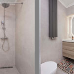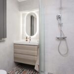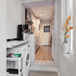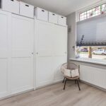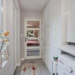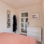 De halfopen keuken is modern en praktisch ingericht en grenst aan een handige bijkeuken met extra kastruimte en opstelmogelijkheden voor wasapparatuur. Hierachter ligt de tweede slaapkamer, rustig aan de achterzijde gelegen. De volledig vernieuwde badkamer (2024) is stijlvol afgewerkt en voorzien van een douche, toilet en wastafel.