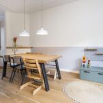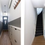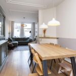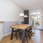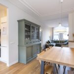 Je betreedt de woning in de diepe hal, waar je direct de moderne afwerking van de woning proeft. De hal is voorzien van de meterkast en een bergkast. Het hoge plafond is één van de karakteristieke details van een woning uit 1913, waardoor elke kamer ruimtelijk aandoet.
