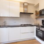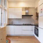 De woonkamer is heerlijk licht, mede door de kamerhoge raampartijen en de openslaande tuindeuren. De kamer is sfeervol ingericht; lichte wanden, sierlijsten op het hoge plafond en een houten vloer in een warme tint. De open keuken is ingericht met een licht keukenmeubel in een hoekopstelling, een 5-pits gaskookplaat, afzuigkap, oven, magnetron, een koel-/vriescombinatie en een vaatwasser. De slaapkamer bevindt zich aan de voorzijde van de woning en is voorzien van een vaste kast, een heerlijke lichtinval door het schuifraam, met rolluik en een nette afwerking: lichte wanden en een grijs gemêleerde tapijtvloer. De moderne badkamer is geheel betegeld en uitgerust met een bad/douchecombinatie, een wastafelmeubel met een verlichte spiegel, een hangkast, designradiator en een hangend toilet.
