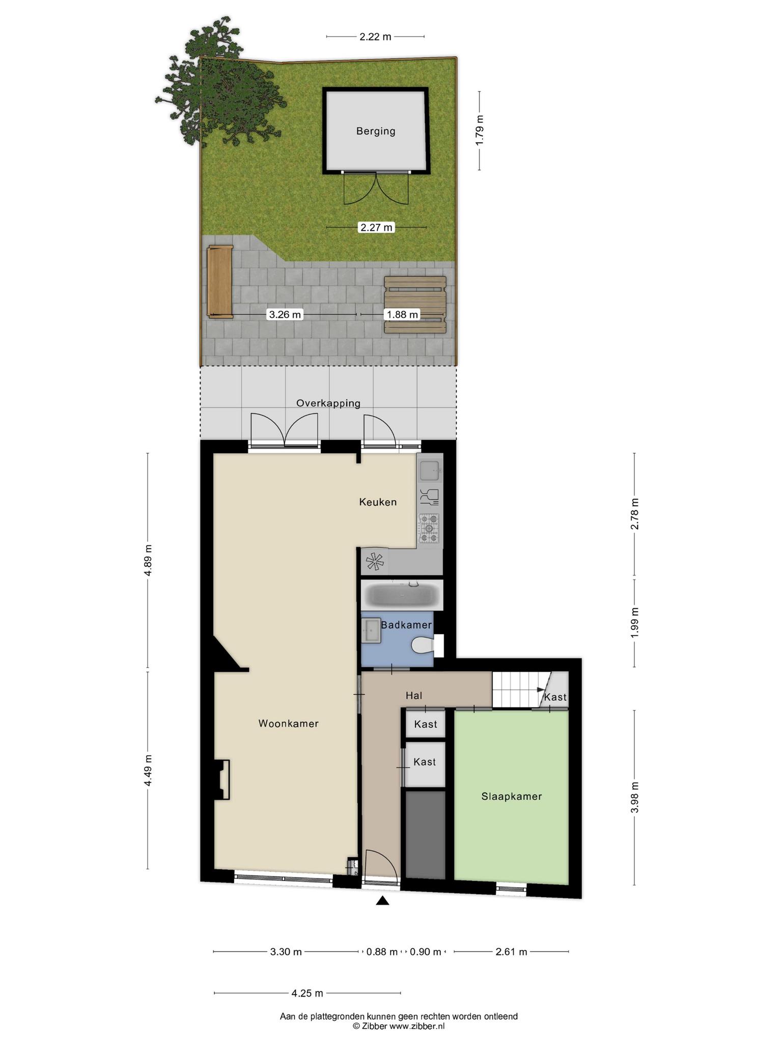 De achtertuin ligt op het zuidoosten, is lekker ruim en aangelegd met sierbestrating, gazon, vaste beplanting en een houten berging, met openslaande deuren. Door het balkon van de bovenburen heb je hier een mooie overkapping, waar je veel gezellige uren door kunt brengen.