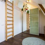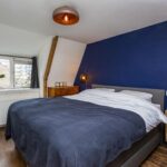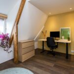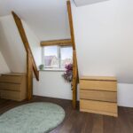 Hier tref je twee ruime slaapkamers, elk met een donkere houten vloer, strak afgewerkte wanden, een raampartij met openslaand venster en ventilatieroosters, en sfeervolle houten balken die het skelet van de woning tonen. Een van de kamers geeft toegang tot de vliering, die perfect dienst kan doen als kinderslaapkamer of logeervertrek. Het dakraam geeft een bijzonder uitzicht op de sterrenhemel. Ook de badkamer is luxe gerenoveerd met natuurlijke kleuren en veel oog voor detail. Je vindt hier een raampartij met openslaand venster en ventilatierooster, elektrische vloerverwarming, spotverlichting en een designradiator. De badkamer is ingericht middels een inloopdouche met hand- en regendouche, een heerlijk ligbad, een kolomkasten een badkamermeubel met dubbele wastafel en lades. .