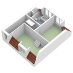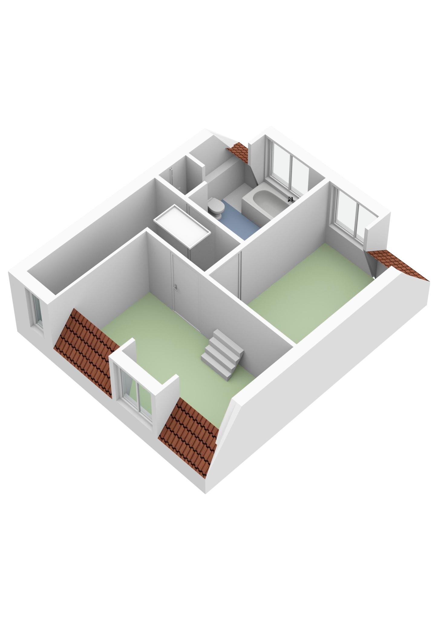 Via een vlizotrap op de overloop is de vliering met veel opslagruimte bereikbaar, de slaapvide wordt bereikt met een houten trap vanuit de slaapkamer aan de voorzijde.