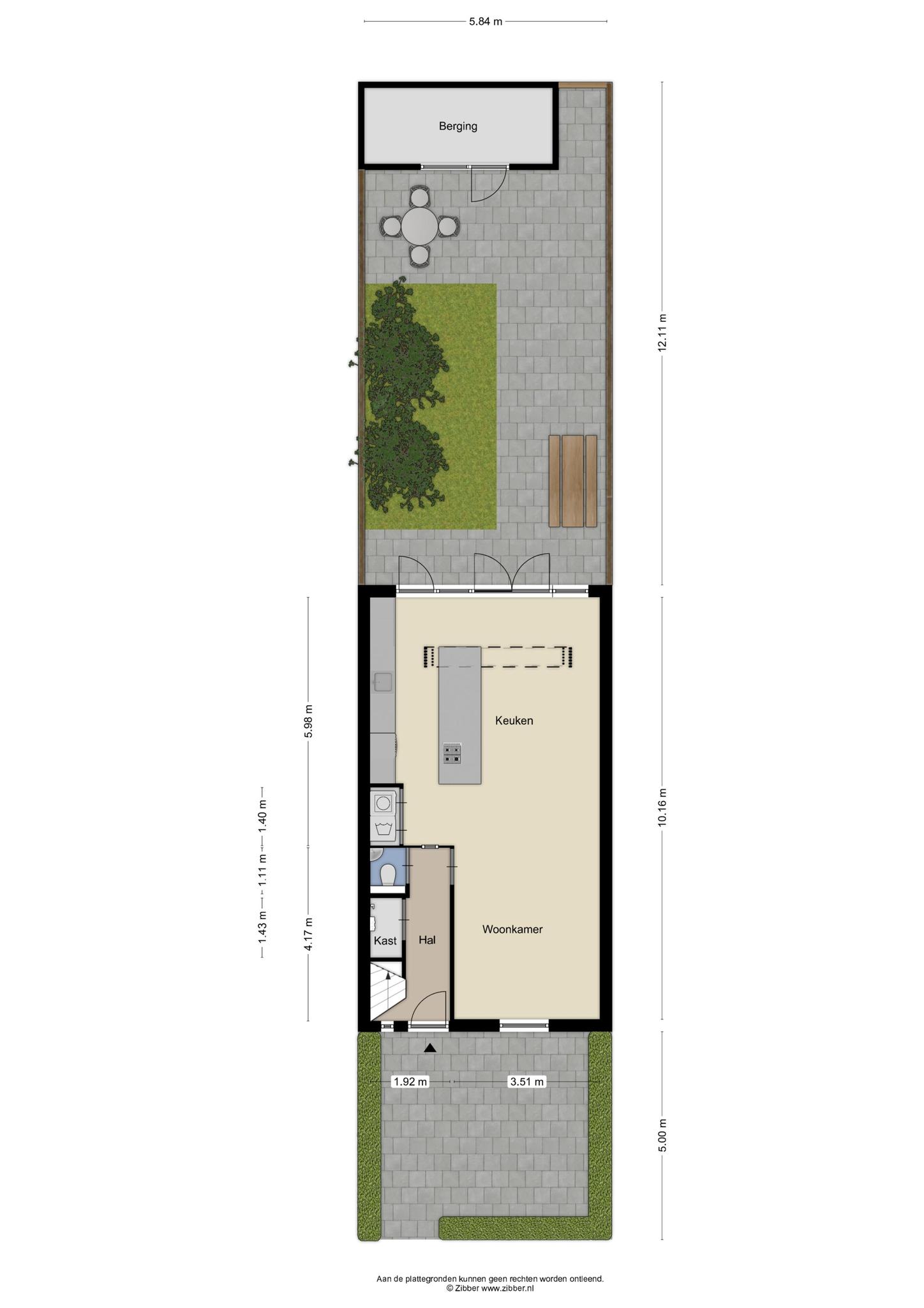 De voortuin aan zuidzijde is heerlijk zonnig en biedt alle ruimte voor een zitje, door een groene heg zit je hier ’s zomers prettig beschut. De achtertuin is gelegen aan noordzijde en biedt plaats aan meerdere zitjes en terrassen. Vanwege de diepte schijnt ook hier vrijwel de hele dag zon. De borders zijn gevuld met kleurige beplanting en door schuttingen aan weerszijden zit je lekker beschut. Achterin tref je een berging met elektra en plaats voor meerdere fietsen, eenvoudig bereikbaar via de achterom. Vorig jaar is het volledige buitenschilderwerk opnieuw gedaan.