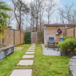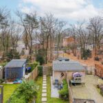 De achtertuin grenst aan een bosstrook en ligt volledig vrij, wat zorgt voor veel privacy en een groen uitzicht. Dankzij de gunstige ligging op het zuidoosten is dit een heerlijke plek om te ontspannen. De tuin is speels ingedeeld met meerdere zitplekken: een zonnig terras om te genieten van de ochtend- en middagzon, een knusse hoek voor een goed boek en een plek in de schaduw voor warme dagen. De borders en beplanting geven de tuin een gezellige, natuurlijke en levendige uitstraling. Daarnaast beschikt de tuin over een vrijstaande houten berging en is deze via de achterom gemakkelijk bereikbaar, ideaal voor fietsen en tuinspullen.