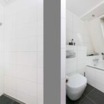 (ca. 3.00 x 2.00, voorzijde) en (ca. 3.90 x 3.00, achterzijde met Velux raam en aansl.TV) en een moderne badkamer vernieuwd omstreeks 2018 v.v. ligbad, inloopdouche met thermostaatkraan, 2e hangend toilet, wastafel, designradiator en Velux dakvenster.