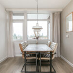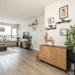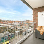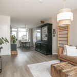 De lichte woonkamer is vergroot doordat de achtergelegen slaapkamer bij de leefruimte is betrokken en biedt direct toegang tot het balkon. Een fijne plek met ruimte voor een royale eettafel.