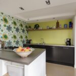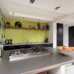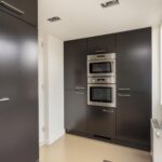 De grote moderne keuken bevindt zich aan de achterzijde van de woning, is uitgevoerd in het zwart met een RVS aanrechtblad, heeft een separate apparatenwand en een ruim kookeiland. De keuken is voorzien van diverse inbouwapparatuur; 5-pits gaskookplaat, oven, magnetron, koelkast, vriezer en vaatwasser. Via de keuken zijn de garage en tuin eveneens te bereiken.