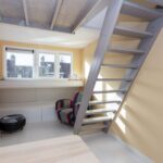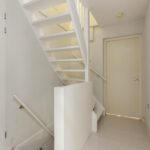 Overloop met laminaatvloer, gestucte wanden trapopgang naar de 2e verdieping.
