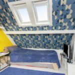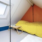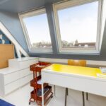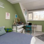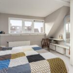 Deze vijfde slaapkamer is ruim van afmeting en heerlijk licht door de baskapel (twee naar buiten uitstekende Velux-dakramen) aan de achterzijde en de twee kleinere Velux-dakramen aan de voorzijde, alle voorzien van sunscreens en verduisteringsgordijn. De kamer is afgewerkt met een laminaatvloer en beschikt over een vaste kast.