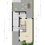 Via een fraaie paneeldeur treed je de ruime en speels ingedeelde woonruimte binnen met aan de voorzijde de living voorzien van veel lichtinval en vrij uitzicht door drie raampartijen en aan de achterzijde de eetkamer die in halfopen verbinding staat met de keuken en via een schuifpui toegang biedt tot de tuin. De gehele woonruimte, inclusief keuken is voorzien van een gietvloer en glad gestucte wanden -en plafonds.