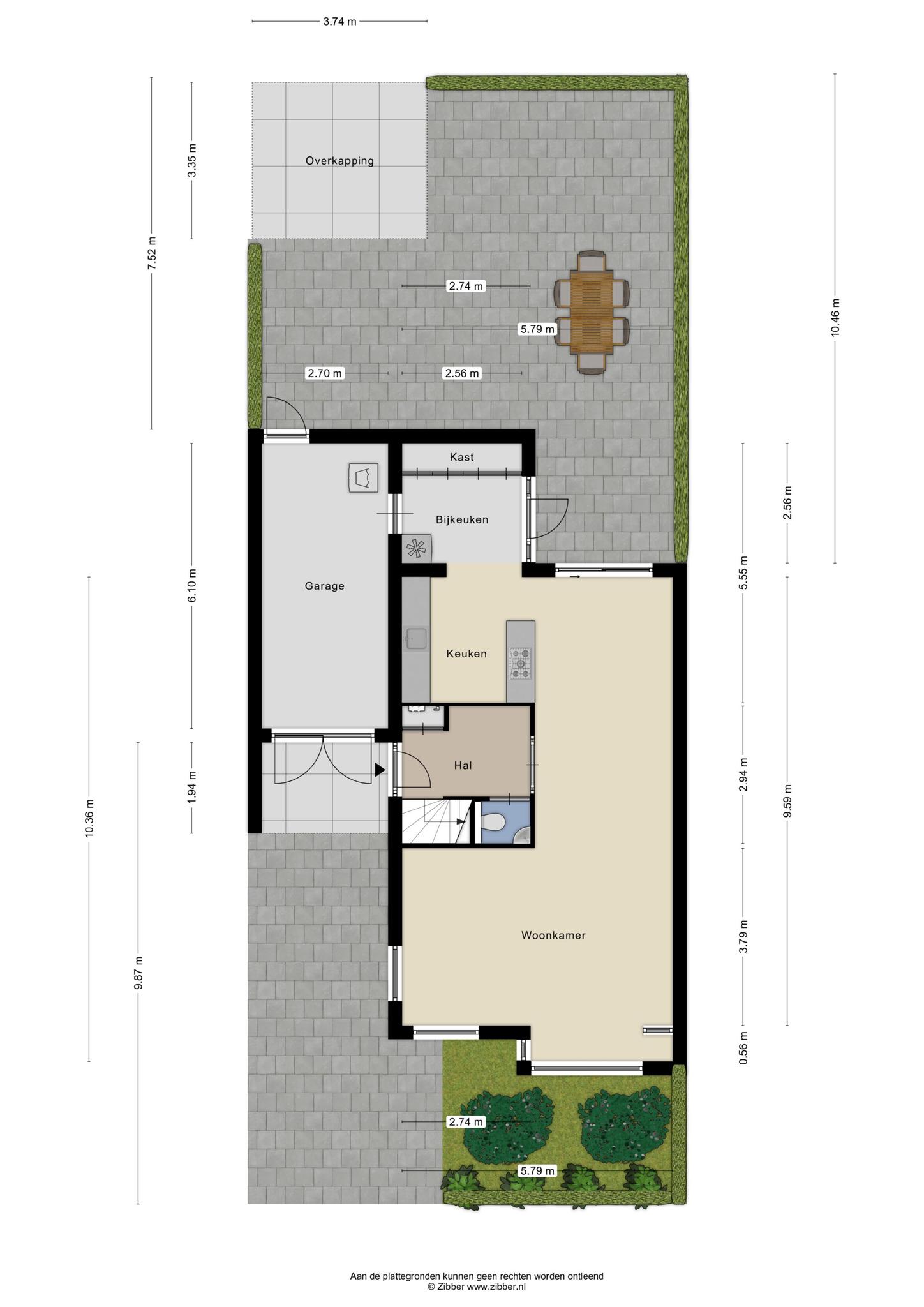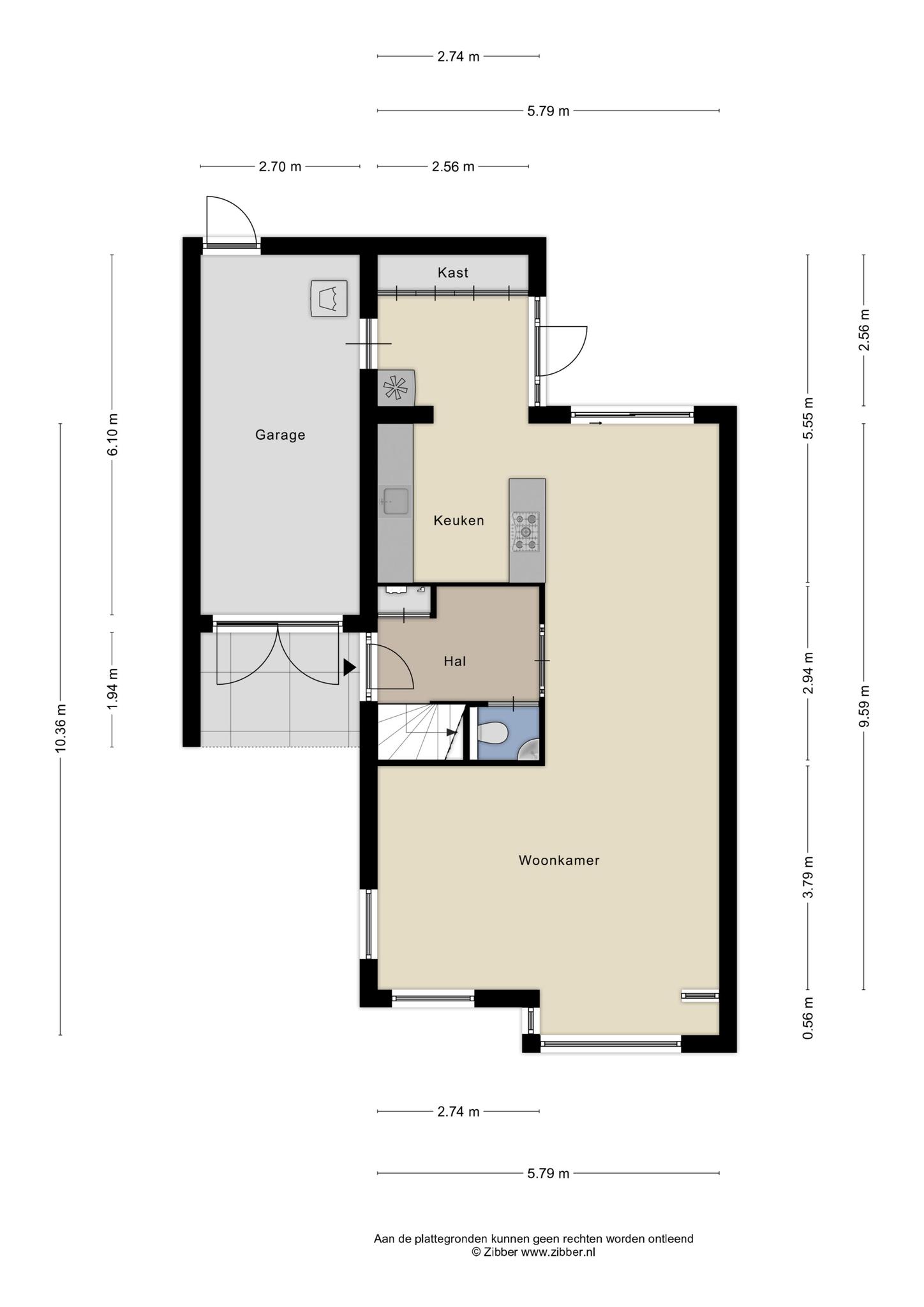 De garage heeft een afmeting van circa 17m2 en is toegankelijk via de openslaande deuren aan de voorzijde, de tuindeur achter en de binnendeur naar de keuken. De garage is voorzien van elektra en water alsmede de wasmachine- en drogeraansluiting.