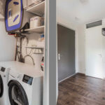Dit zonnige appartement, gelegen op de eerste woonlaag van het complex, verwelkomt je met een ruime hal. Vanuit de hal heb je toegang tot een knusse slaapkamer, een moderne badkamer en een woonkamer met open keuken. De slaapkamer is intiem en gezellig, met voldoende ruimte voor een tweepersoonsbed plus kasten, waardoor je al je kleding en accessoires netjes opbergt. De woonkamer baadt in natuurlijk licht dankzij de grote ramen, terwijl de open keuken met inbouwapparatuur het koken extra aangenaam maakt. Via de woonkamer bereik je het balkon, dat je met glazen deuren kunt afsluiten zodat je in elk seizoen van het buitenleven kunt genieten.