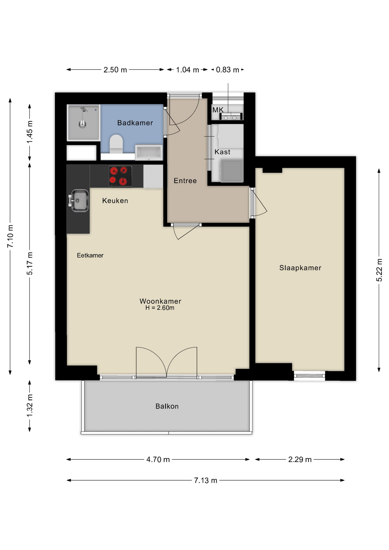 Loop mee door 45 vierkante meter aan slim ingerichte ruimte, uitnodigend voor starters en een- of tweepersoonshuishoudens die op zoek zijn naar een plek die past bij een actieve leefwijze. Bij binnenkomst in de hal, leidt de deur je direct naar de knusse woonkamer waar daglicht royaal binnenvalt door de hoge ramen. De open keuken, voorzien van een oven, afzuigkap, koelkast en keramische kookplaat, maakt het gemakkelijk om tijdens het koken deel te blijven van het sociale gebeuren. Het balkon op het oosten nodigt uit om de dag te beginnen met een kopje koffie in de ochtendzon.
