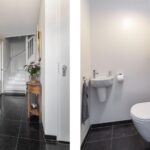 Entree, ontvangsthal met meterkast en toiletruimte. Vanuit de hal betreed je de woonkamer met luxe en sfeervolle open keuken.