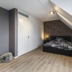 Vierde royale slaapkamer met dakkapel en badkamer voorzien van douche, toilet en wastafel. Op deze verdieping is een aparte wasruimte gerealiseerd voor de wasmachine, droger en CV-opstelling.