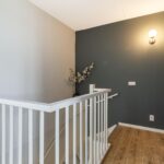 De eerste verdieping is voorzien van een mooie laminaatvloer en óók hier zijn de wanden strak afgewerkt met glad stucwerk.