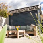 Openslaande deuren met zijramen bieden toegang tot de zonnige gezellige tuin en het terras.