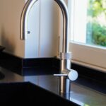 De keuken in U-opstelling is afgewerkt met een hardstenen blad en voorzien van moderne inbouwapparatuur, zoals een gasfornuis, afzuigkap, koelkast, vaatwasser en een Quooker (2022).