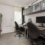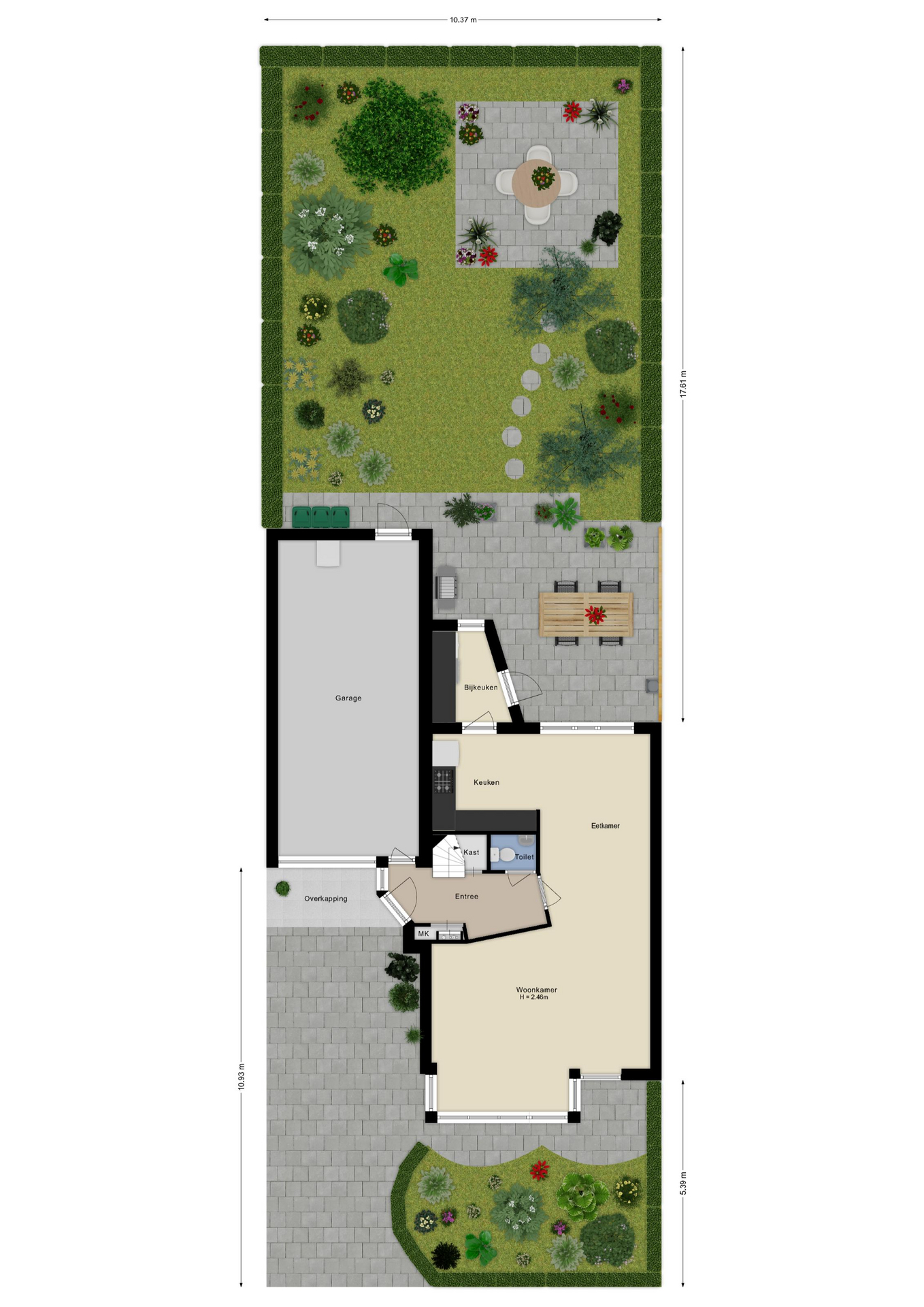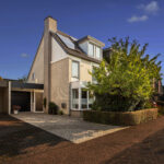 Royale garage (30 m²) + oprit met plek voor 2 auto’s.