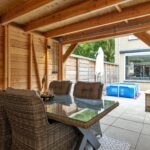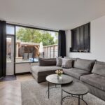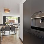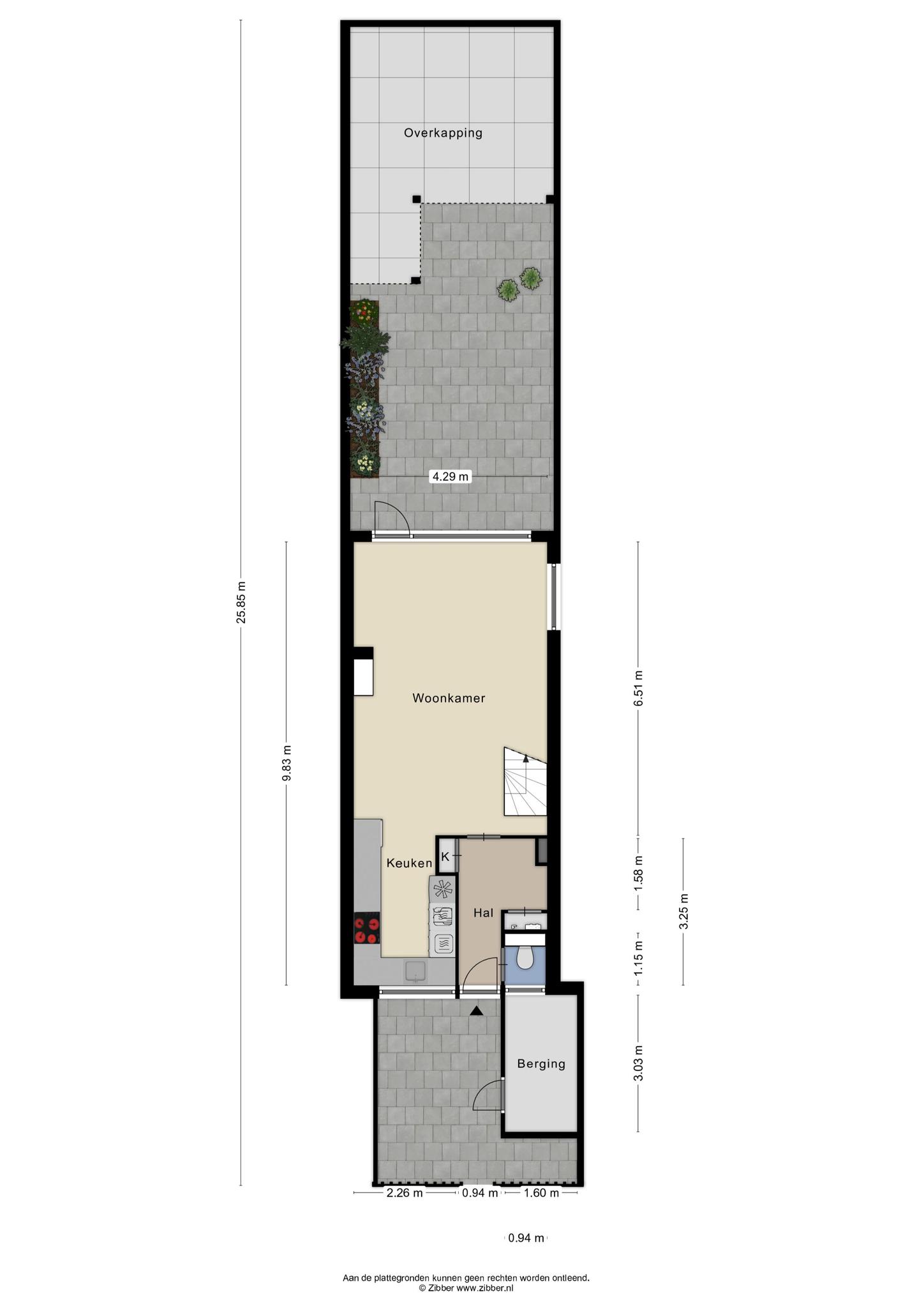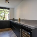 De hal/entree biedt toegang tot de meterkast, het toilet en de woonkamer. De woonkamer is maar liefst 28 m2 groot en voorzien van een laminaat visgraat vloer, glad gestucte wanden en moderne open inbouwkeuken. Deze is voorzien van een Bora inductiekookplaat met geïntegreerd afzuigsysteem, klimaatkast, vaatwasser, koffiezetapparaat, combi-oven en koel- vriescombinatie. Via de woonkamer is de ruime achtertuin op het zuiden te bereiken met riante overkapping. Hier kan optimaal van de zon en privacy genoten worden.