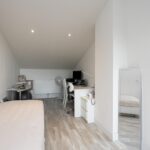 - Glad gestucte wanden en laminaat visgraatvloeren;