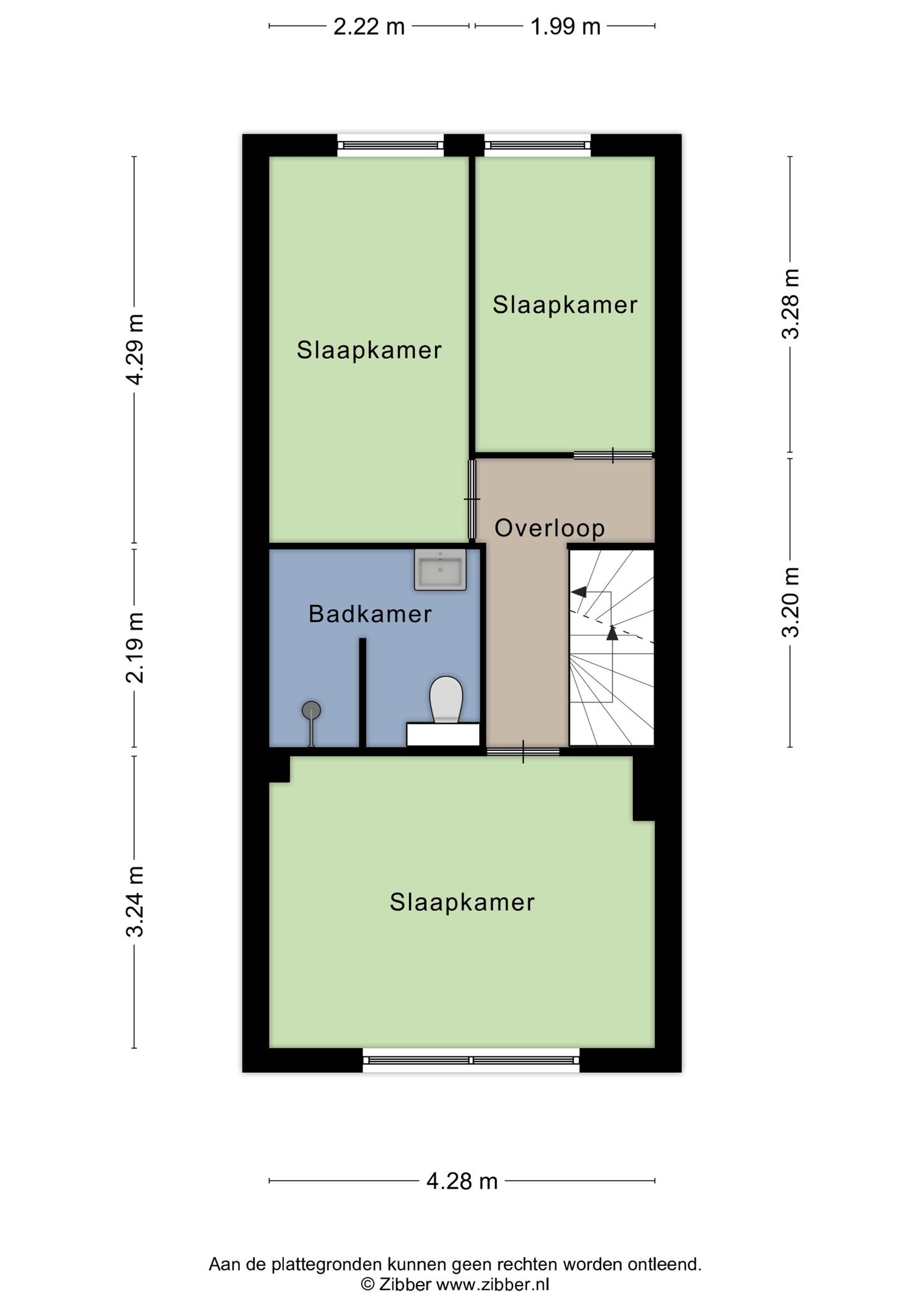 Via de overloop zijn een drietal goed bemeten slaapkamers van ca. 13,9 m2, 9,5 m2 en 6,5 m2 te bereiken, alsmede de luxe badkamer met inloopdouche, toilet, wastafelmeubel en designradiator. Deze verdieping is eveneens voorzien van glad gestucte wanden en een laminaat visgraatvloer.