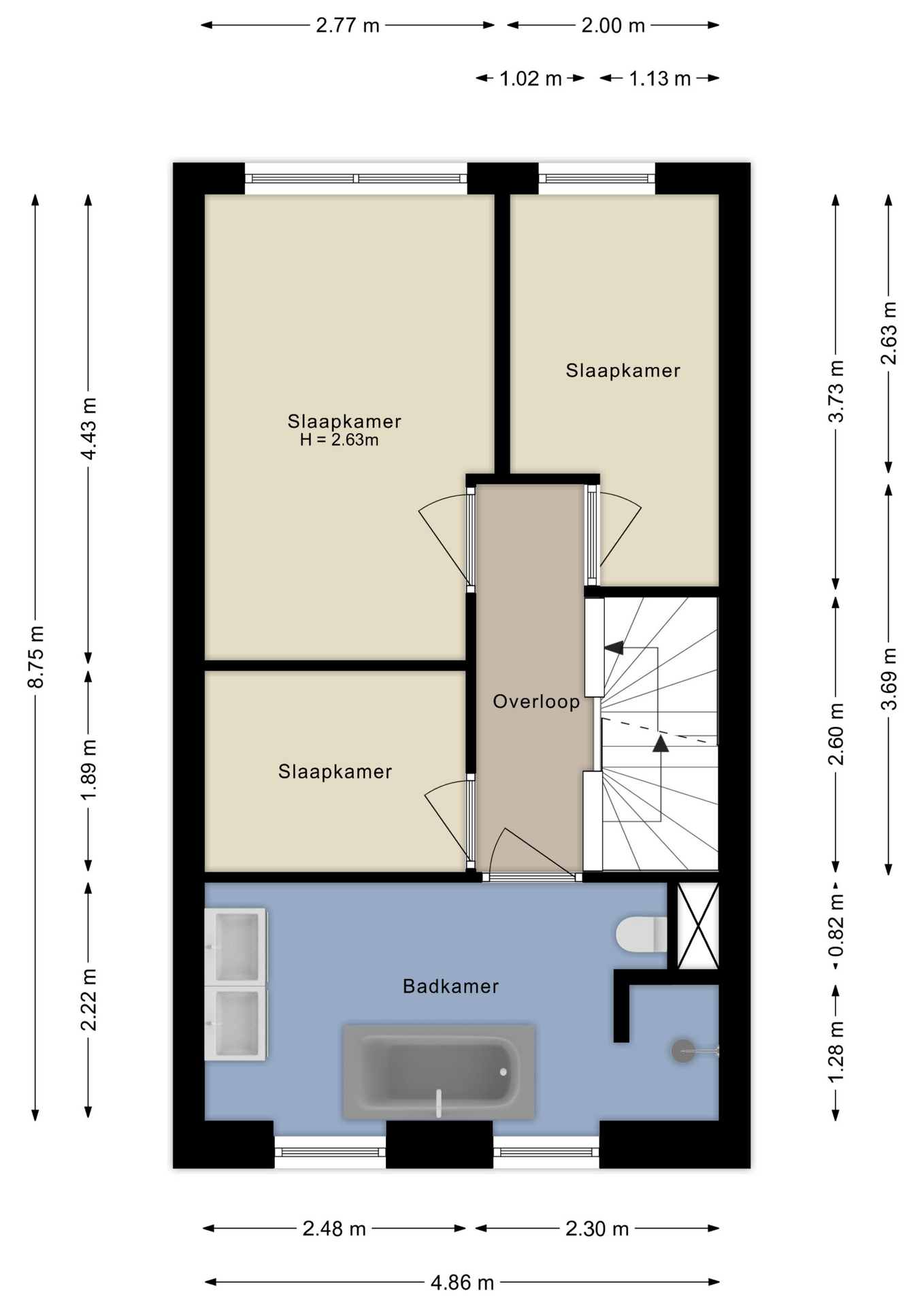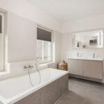De overloop geeft toegang tot twee royale slaapkamers en een praktische kastenkamer. De moderne, vergrote badkamer is een echte blikvanger met een riant ligbad, inloopdouche, dubbel wastafelmeubel en toilet.