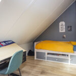 Hier is een ruime vierde slaapkamer gerealiseerd en een aparte was-/technische ruimte met cv-ketel, de omvormer van de zonnepanelen en de wasmachineaansluiting.