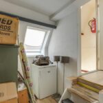2e verdieping: ruime overloop, zeer lichte en verrassend ruime woonverdieping met originele spanten in het zicht. Dit is ontstaan door meerdere dakkapellen en prachtige dakramen. L-vormige keuken. Grote slaapkamer, Badkamer voorzien van een toilet, douche en wastafelmeubel.