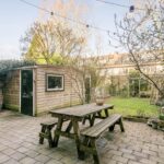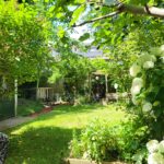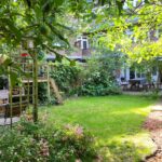 Uniek is de grote tuin van 160 m2 waar niet alleen een berk, maar ook een appel-, peren- vijgen- en walnotenboom te vinden is. De tuin is te bereiken via één van de slaapkamers aan de achterkant van het huis (openslaande deuren), de woonkamer (openslaande deuren) en de keuken (achterdeur). De tuin is tevens te bereiken via een achterom zodat je er ook met de fiets kan komen. Het is er stil en je ontwaakt door het gefluit van de vogels. Roodborstjes, merels, een bonte specht en een Vlaamse gaai behoren tot de vaste gasten. Je komt helemaal tot rust in één van de verschillende zitjes of aan de lange tuintafel. Hoewel de tuin op het noordwesten ligt, is er doordat deze zo diep is altijd wel ergens zon te vinden en is het er op de hete dagen lekker koel. Er staan bovendien twee grote schuren in, waarvan er één geïsoleerd is en voorzien van verwarming en stromend water.