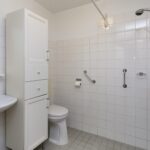 De twee slaapkamers zijn beide van goed formaat. De grootste slaapkamer biedt voldoende ruimte voor een tweepersoonsbed en kledingkast, terwijl de tweede slaapkamer ideaal is als logeerkamer of werkkamer. De badkamer is eenvoudig maar praktisch ingericht met een douche, wastafel en toilet.