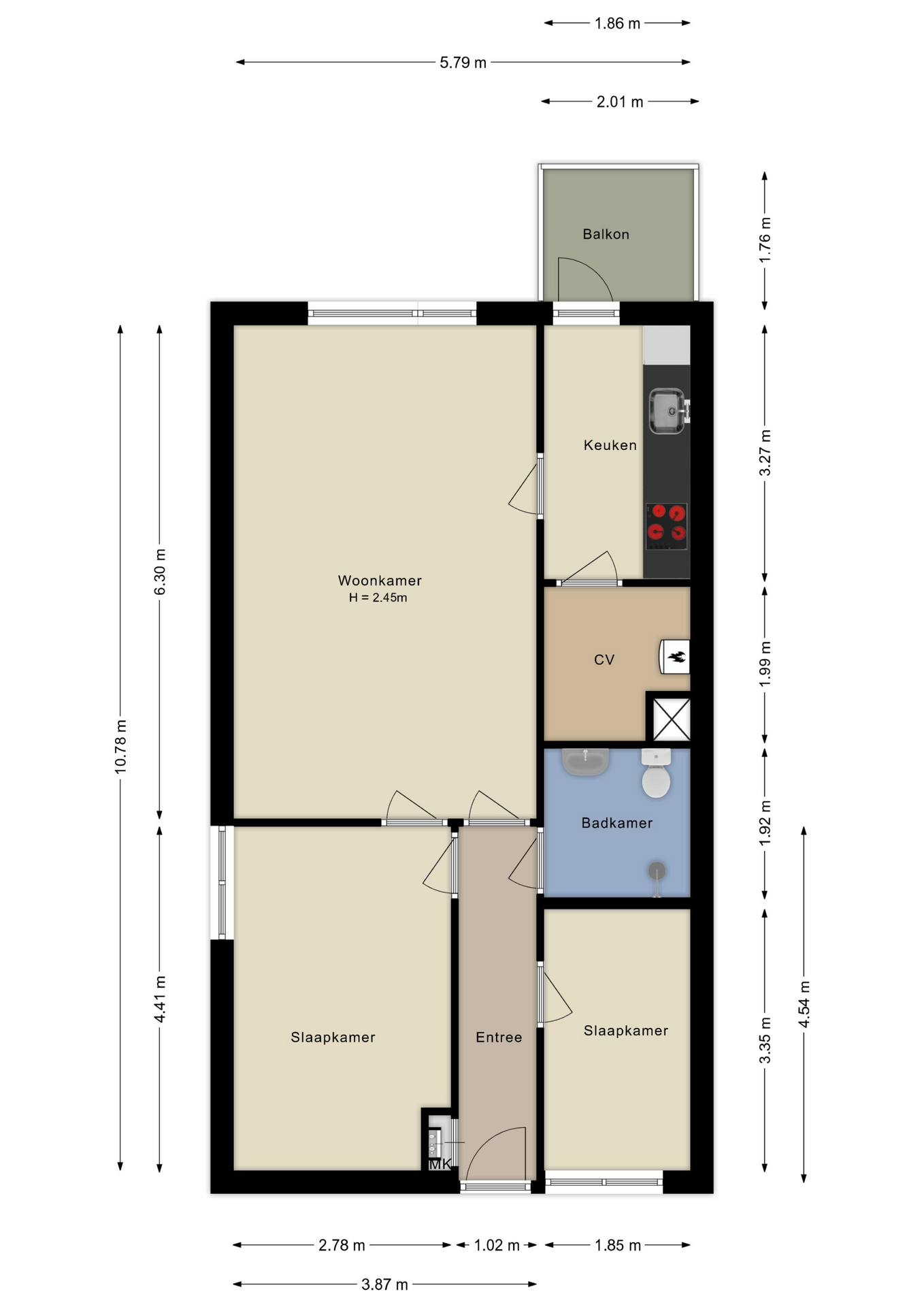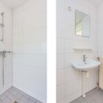 De twee slaapkamers zijn beide van goed formaat. De grootste slaapkamer biedt voldoende ruimte voor een tweepersoonsbed en kledingkast, terwijl de tweede slaapkamer ideaal is als logeerkamer of werkkamer. De badkamer is eenvoudig maar praktisch ingericht met een douche, wastafel en toilet.
