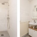 De twee slaapkamers zijn beide van goed formaat. De grootste slaapkamer biedt voldoende ruimte voor een tweepersoonsbed en kledingkast, terwijl de tweede slaapkamer ideaal is als logeerkamer of werkkamer. De badkamer is eenvoudig maar praktisch ingericht met een douche, wastafel en toilet.