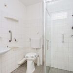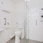 De twee slaapkamers zijn beide van goed formaat. De grootste slaapkamer biedt voldoende ruimte voor een tweepersoonsbed en kledingkast, terwijl de tweede slaapkamer ideaal is als logeerkamer of werkkamer. De badkamer is eenvoudig maar praktisch ingericht met een douche, wastafel en toilet.