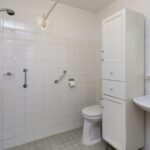 De twee slaapkamers zijn beide van goed formaat. De grootste slaapkamer biedt voldoende ruimte voor een tweepersoonsbed en kledingkast, terwijl de tweede slaapkamer ideaal is als logeerkamer of werkkamer. De badkamer is eenvoudig maar praktisch ingericht met een douche, wastafel en toilet.
