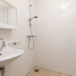 De badkamer is praktisch ingedeeld en voorzien van een douchehoek, wastafel en aansluiting voor de wasmachine. Het separate toilet is uitgerust met een fonteintje.