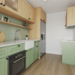 De open keuken is eenvoudig uitgevoerd in een rechte opstelling.