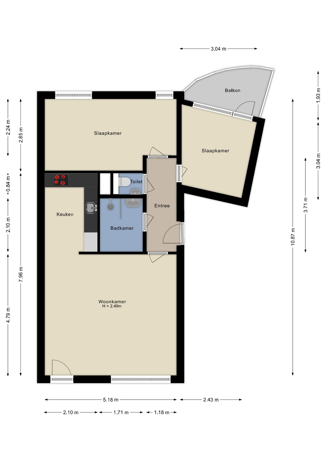 - Balkon bereikbaar vanuit de slaapkamer.