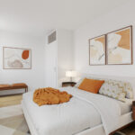 Het appartement telt twee slaapkamers: een ruime hoofdslaapkamer en een tweede slaapkamer die toegang geeft tot het balkon. Dit balkon ligt op het noordwesten, waardoor je hier ’s middags en ’s avonds heerlijk van de zon kunt genieten.