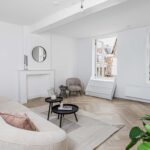 Lichte living met originele schouw, waar je een ruime zithoek kunt creëren. Je hebt hier veel privacy en de openslaande deuren bieden toegang tot het grote dakterras (circa 4 x 4,5m), dat garant staat voor prachtige zomeravonden!