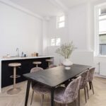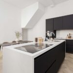 Zeer ruime entree met meterkast, toilet, wasruimte en trapopgang. Deze ruimte is qua daglichttoetreding en grootte ook prima bruikbaar om bijvoorbeeld een werkplek te creëren. Prachtige woonkeuken met een hoog plafond van bijna 3.80m en mooie raampartijen. Deze luxe keuken is voorzien van alle gemakken zoals een kook-/spoeleiland, inductiekookplaat met ingebouwde afzuiging, koelkast, vriezer, combi-oven, vaatwasser en marmer composiet aanrechtblad. Er is voldoende ruimte voor een grote eettafel. Vanuit de keuken kom je via een mooie, originele stenen trap in de slaapkamer in het ruime souterrain/gewelfkelder met vloerwarming en een raampje voor ventilatie.