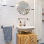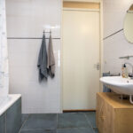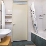 Zowel aan de voorzijde als aan de achterzijde van de woning is er een slaapkamer gelegen. Beide slaapkamers zijn verzorgd en ruim van formaat. De badkamer is uitgevoerd met een ligbad met douche voorziening en een wastafel. De tegelvloer in de badkamer is recent vernieuwd.