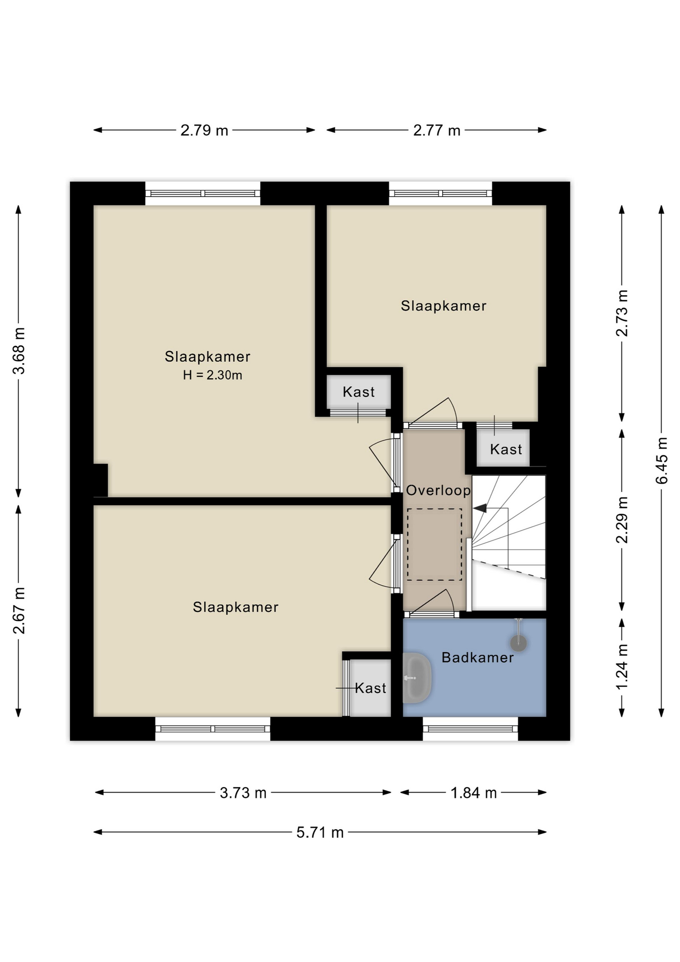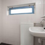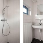 Overloop met toegang tot drie slaapkamers, stuk voor stuk van prettig formaat en geschikt als slaap-, werk- of hobbykamer. De badkamer is volledig betegeld en beschikt over een douche en wastafel.