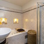 De overloop biedt toegang tot een tweetal slaapkamers van ca. 11 m2 en 9,5 m2, het aparte toilet, alsmede de moderne badkamer met douche, wastafel en bad.