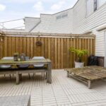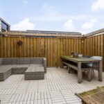 Via de schuifpui in de woonkamer is het riante dakterras te bereiken van ca. 26 m2. Deze is gesitueerd op het zuiden en verzorgd ingericht met mooie vloerdelen en een schutting, waardoor optimaal van de zon en privacy genoten kan worden.