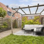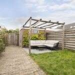De achtertuin is gunstig gelegen op de zon (zuiden) en heeft een diepte van ca. 9 meter. Naast de stenen berging met elektra is in de tuin een grasveld aanwezig, sierbestrating, borders met vaste beplanting, zonwering en een praktische achterom.